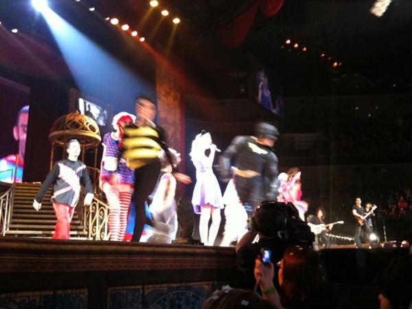 I was there, the second show on the tour I have seen, and Taylor was clearly not feeling well: she did not play “Mine” or “Dear John,” but she did play “Enchanted.” During her acoustic set, she had a little coughing fit between songs, and she insisted “I am not sick!” But she had another coughing attack during “Enchanted,” and was clearly struggling to sing in the high range of her voice all night long. She still gave a strong performance, but was off her usual game a little bit. I hope she gets a chance to get some rest, and does not extend the Speak Now tour deep into 2012, because she could probably use a break after the past five years.