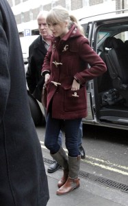 The Sparkly Dressed wrapped up her visit to the Sundance Film Festival, made a quick stop in LA and headed to London. According to Celebrity-Gossip.net, the Blonde With The Sparkly Guitar is in London, England. I hope she gets some free stuff from all the air mileage. Here at the Swift Agency, one guy who knew what he was getting into when he decided to blog about T-Swizzle, we take time off by just lying on the couch watching TV. Taylor is not one to sit still.