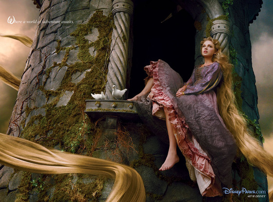 Back in June 20, 2012, the Enchantress participated in a photoshoot with famed photographer Annie Leibovitz in Culver City. The photo, commissioned by Disney, was a Disney Parks promotion ad which features Tay as the latest incarnation of Rapunzel, from the Disney movie Tangled version. You can read the original story at E! Online. You can also see a clip of the photoshoot at ETonline.