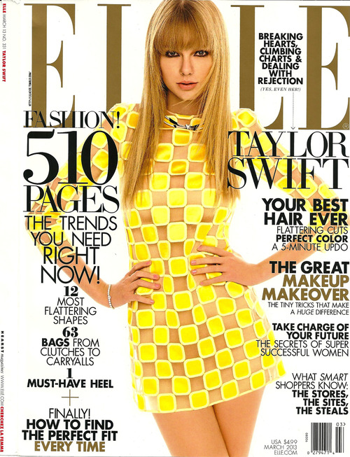 The Princess in Red is appearing on the cover and the inside pages of ELLE for March 2013. There’s some great shots in there, but so far most are scans. I’ll wait a bit to see if some originals show up. Meanwhile, have a look at T-Swizzle on the cover!