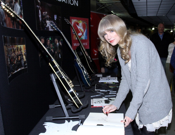 The Blonde With The Sparkly Guitar was at the MusiCares charity signing booth as part of one of the 55th Grammy Awards events held at STAPLES Center on February 8, 2013 in Los Angeles, California. Original story through the meta information from the original picture at Getty Images. How’s that for being creative (still more reliable that Us Weekly, huh). The Enchantress is in Los Angeles on rehearsals for the opening number for the 55th Grammy Awards.